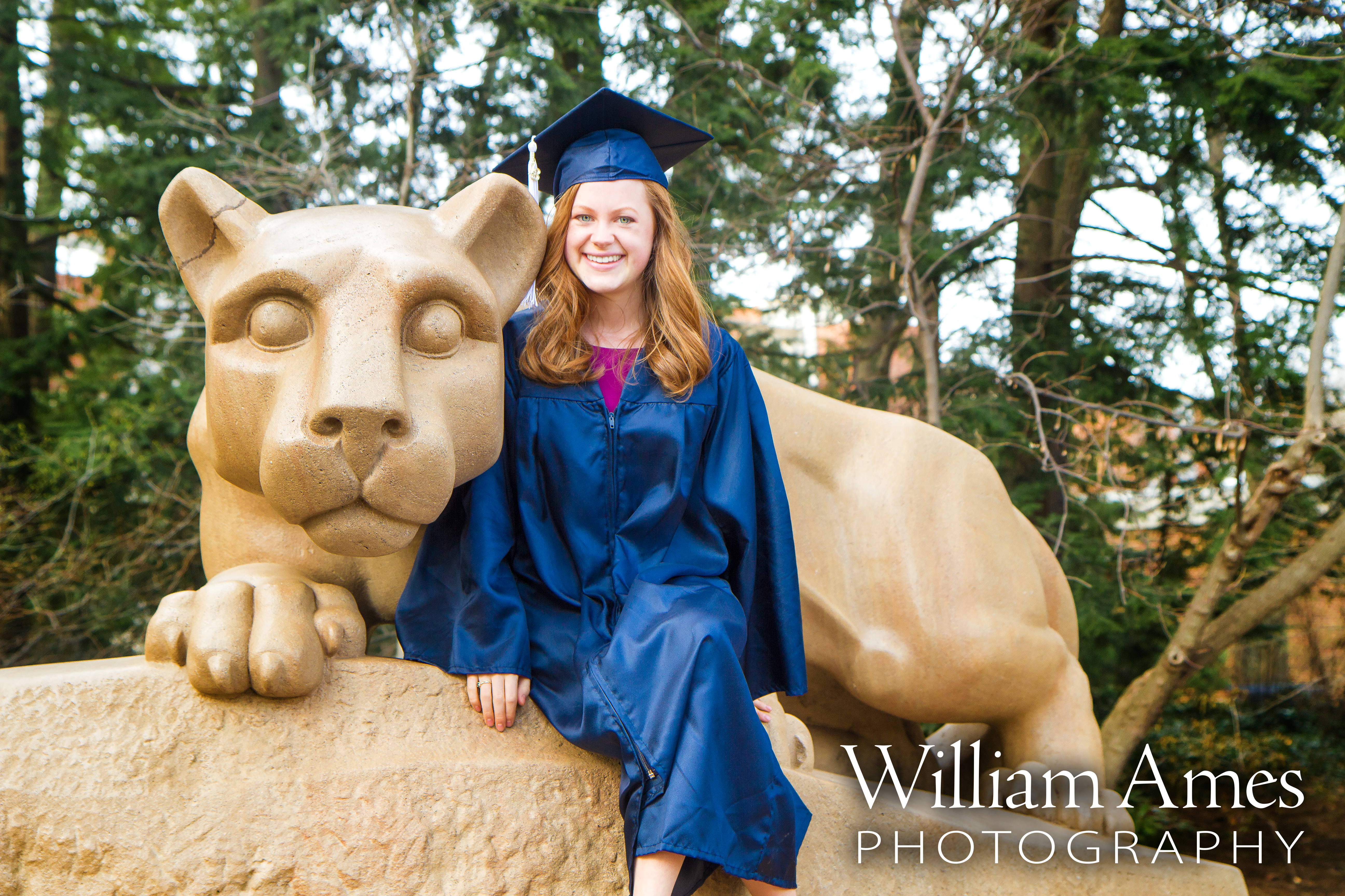 Popular spots on campus are the Nittany Lion Shrine, Beaver Stadium (outside only), the Arboretum, Hort Woods, Mount Nittany, and any of the other iconic locations on campus. The photos are yours—you own the copyright.